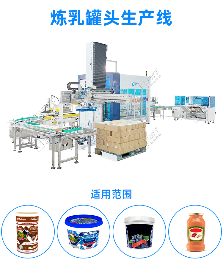 尼為提供整套煉乳灌裝生產線,從灌裝,旋蓋,裝托到膜包、碼垛設備,該生產線適配玻璃罐、馬口鐵罐及塑料容器等多種包裝形式,兼容不同黏度煉乳產品,且提供整廠規劃設計。